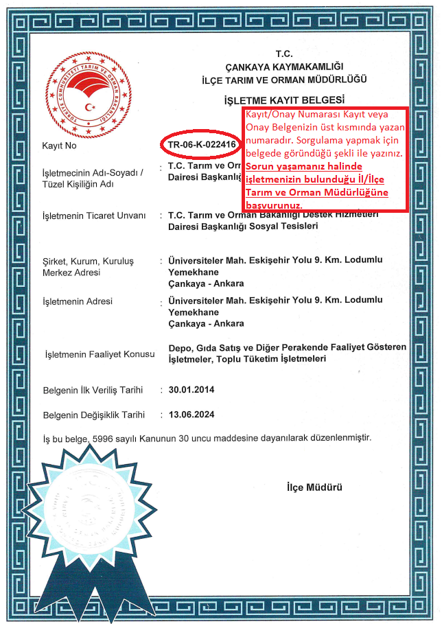 Kayıt/Onay Numarası: